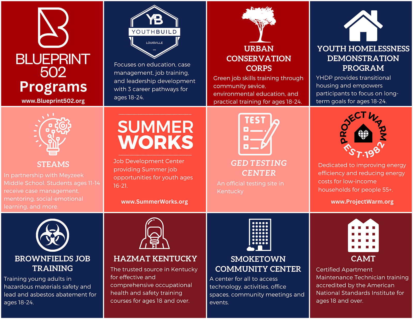 Blueprint 502 is a workforce development, education, and leadership program empowering 1000's of Louisville’s opportunity youth each year, ages 18–24, to reach their full potential as leaders and contributors to a thriving local economy.