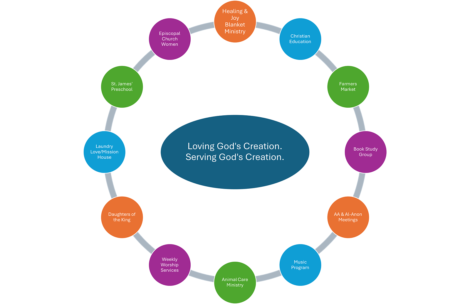 Welcome to St. James’ Episcopal Church, Pewee Valley, KY. We are glad you are here! St. James’ is a 501(c)(3) and is listed on the National Register for Historic Places. St. James’ has been Loving God’s Creation, Serving God’s Creation, since 1869. Over the years, St. James’ has given back to the community in a variety of different ways, including: