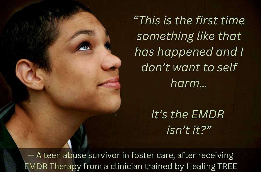 Then her therapist received EMDR Therapy training through Healing TREE’s scholarship — and something shifted. For the first time, she didn’t want to hurt herself. For the first time, she saw a way forward.