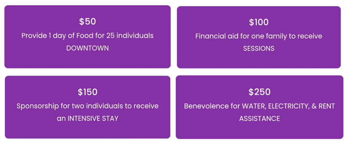 We offer all of our services FREE of charge, while also offering clients the opportunity to give towards the services they receive.